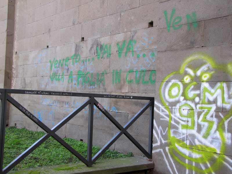 Visto il degrado in cui versa porta San Leonardo si potrebbe cambiarne il nome in "porta Discarica" oppure "porta dei Cerebrolesi" dato che è divenuta il punto di ritrovo di alcune categorie di idioti della città.